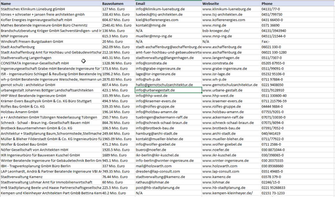 List of Construction Industry contacts in Germany with over 25.000 records.