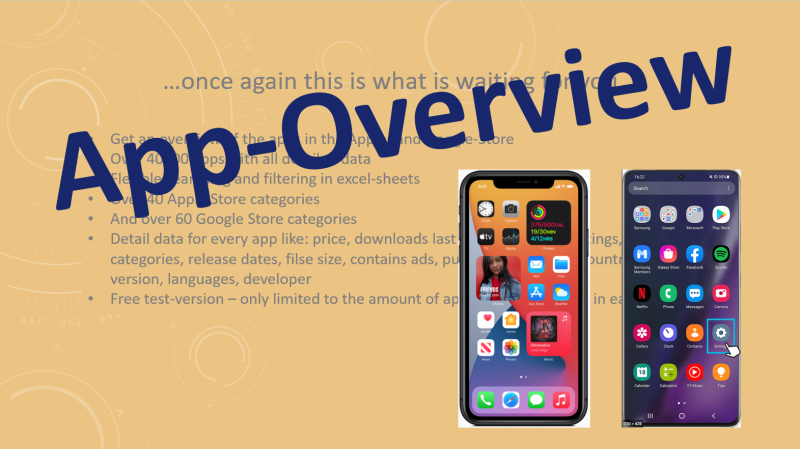 - Free test-version – only limited to the amount of apps (300 app entries in each excel-sheet)