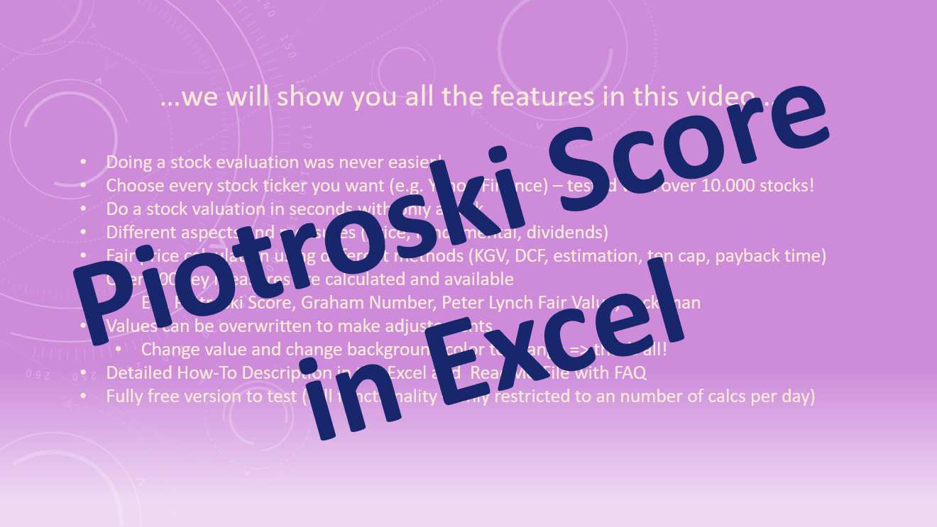 With this Excel tool you are able to determine the Piotroski F-Score for any stock within a few minutes.